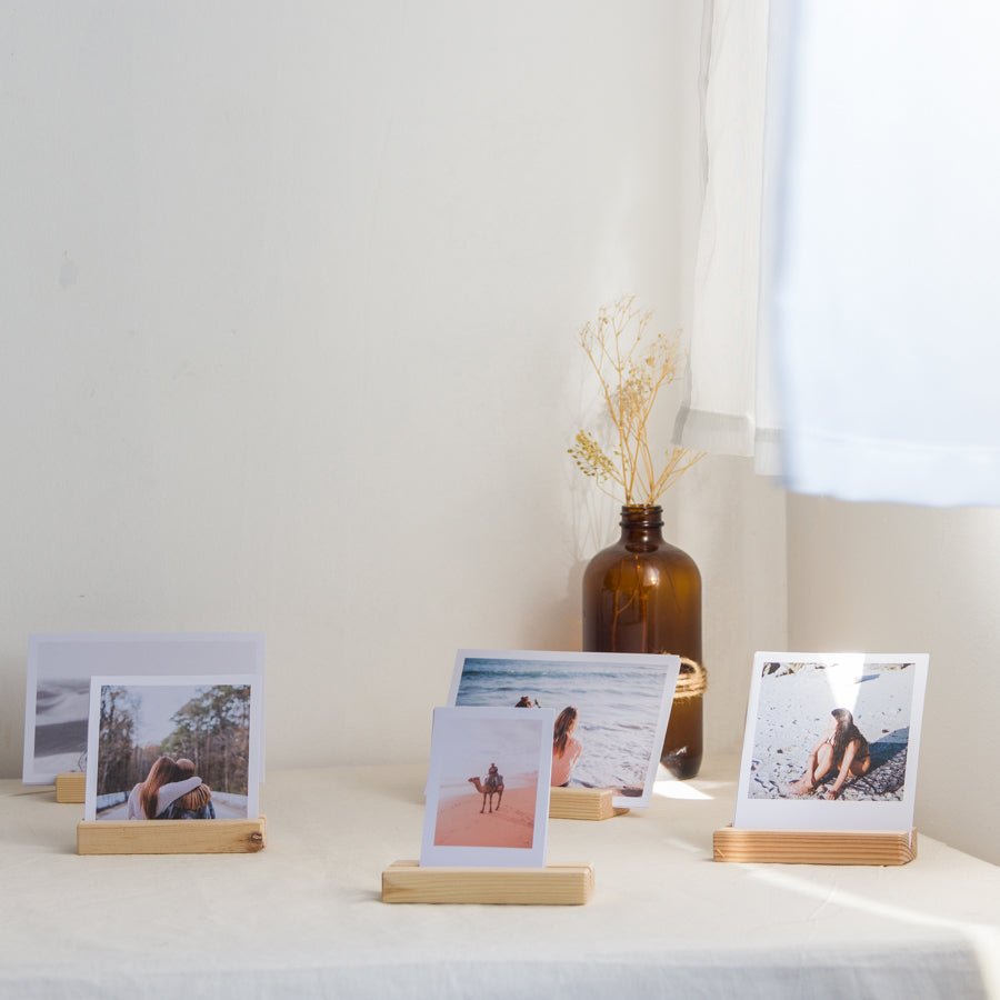 4. Add a light string or a wooden stand to decorate with your photos.