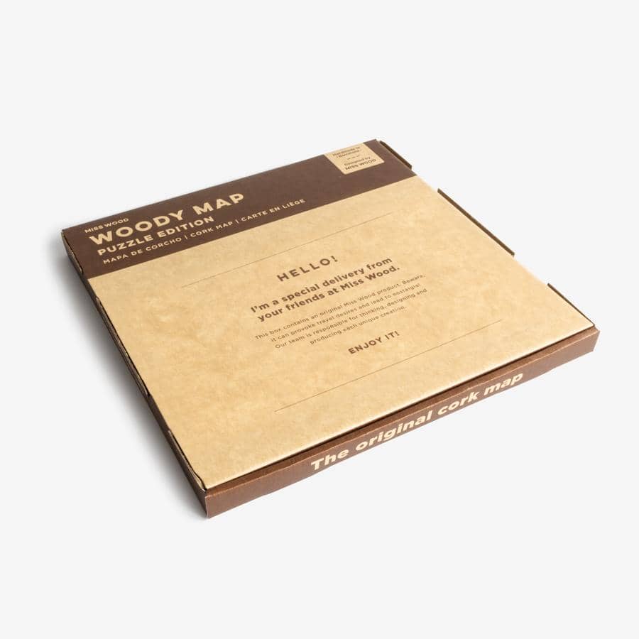 In front of you, the smallest of our Woody Maps. A cork puzzle map in 3 or 6 pieces, easy to hang on any surface without the need for a frame. If you are looking for an original, affordable and space-saving gift, this is the ideal solution.
