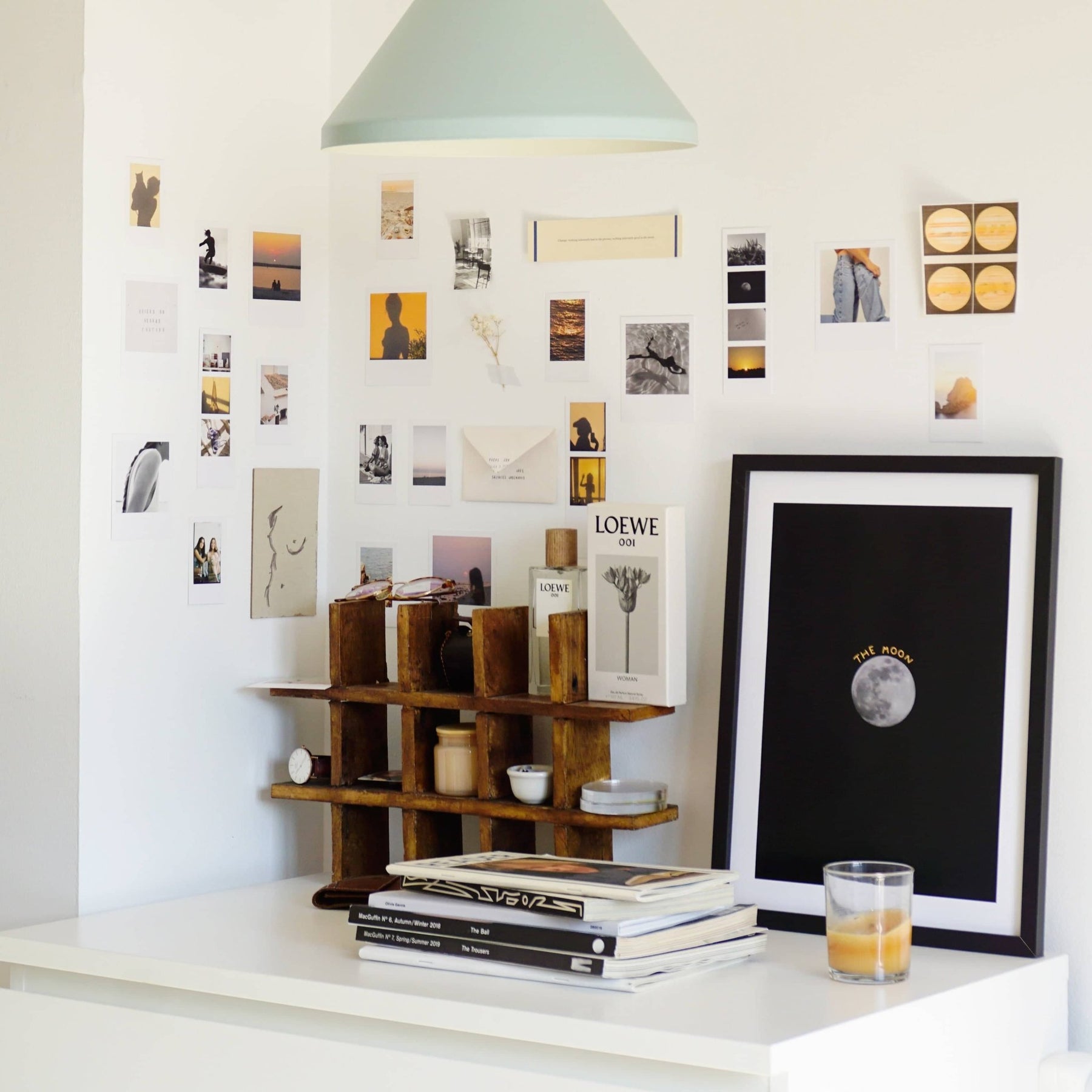 Create a collage on the wall, matching them with different photo formats.