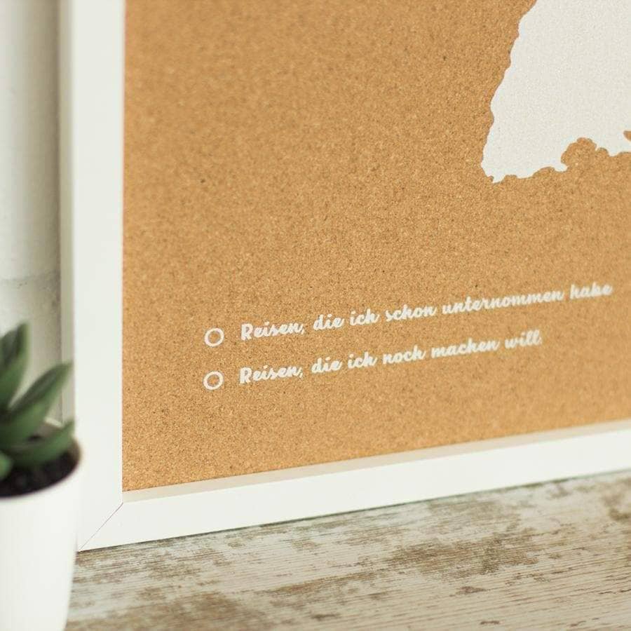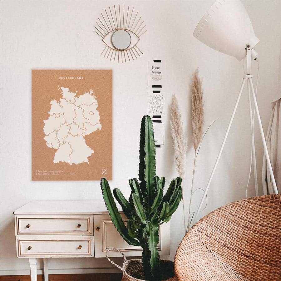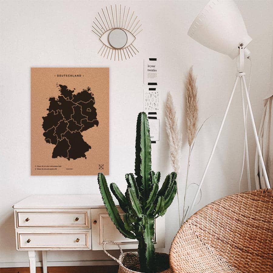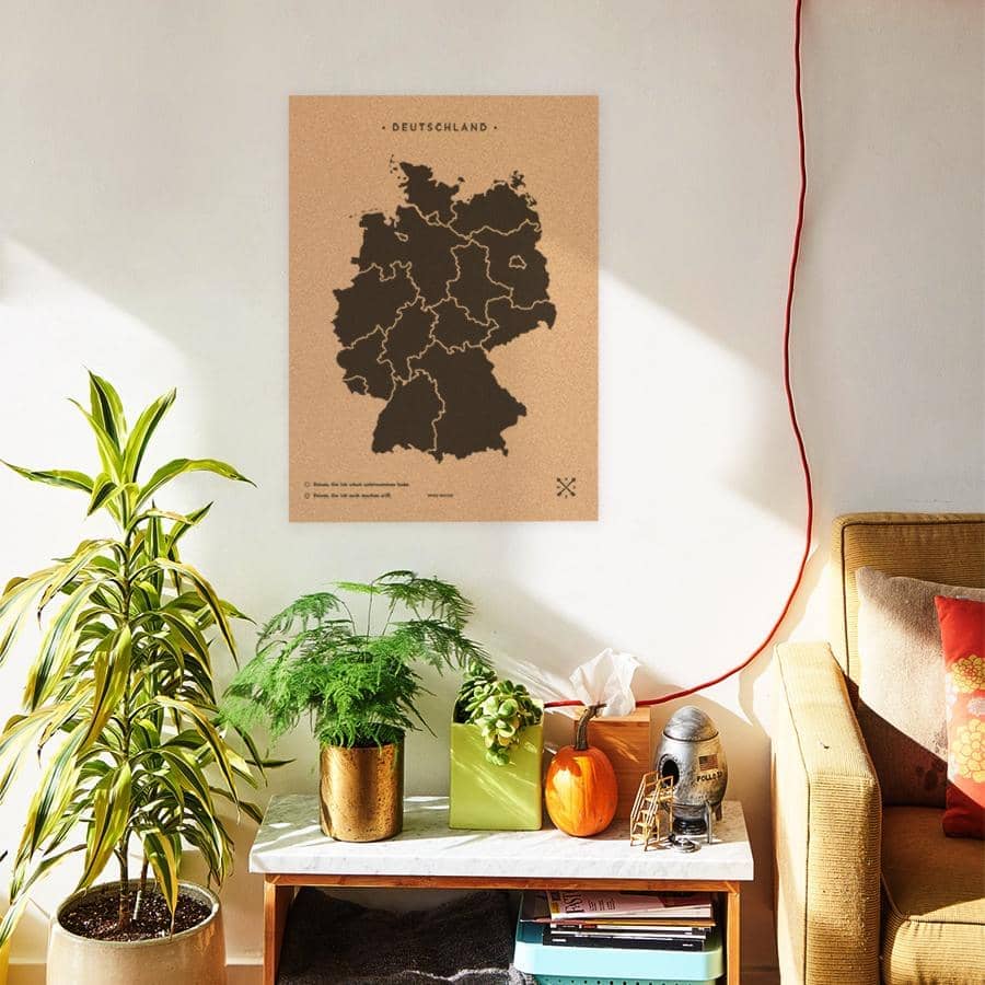 Decorate the walls of your home with a cork map of Germany. Choose between black or white for the frame and design, and think in which room you'd like to hang it. You know it already? Perfect! Now, all you have to do is place the pins included and add your most beautiful vintage-style shots.